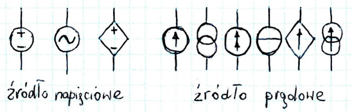 Symbole źródeł napięciowych i prądowych