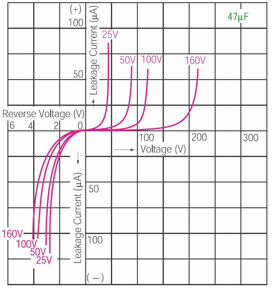 Nie jest do końca prawdą opinia, że elektrolityczne kondensatory aluminiowe nie mogą pracować przy odwrotnej biegunowości przyłożonego napięcia. W takiej nienormalnej sytuacji należy się jednak liczyć ze zwiększonymi prądami upływu. Z wcześniejszego opisu wynika, że „elektrolity” mogą pracować przy napięciach, które nie spowodują formowania folii katodowej (i nieodłącznego gazowania). Dlatego niektóre katalogi podają dopuszczalne stałe napięcie wsteczne równe 2 V, jednak absolutnie bezpieczną wartością wydaje się napięcie 1 V. Napięcie to wynika choćby z grubości istniejącej, naturalnej warstwy tlenku na powierzchni folii katodowej.
