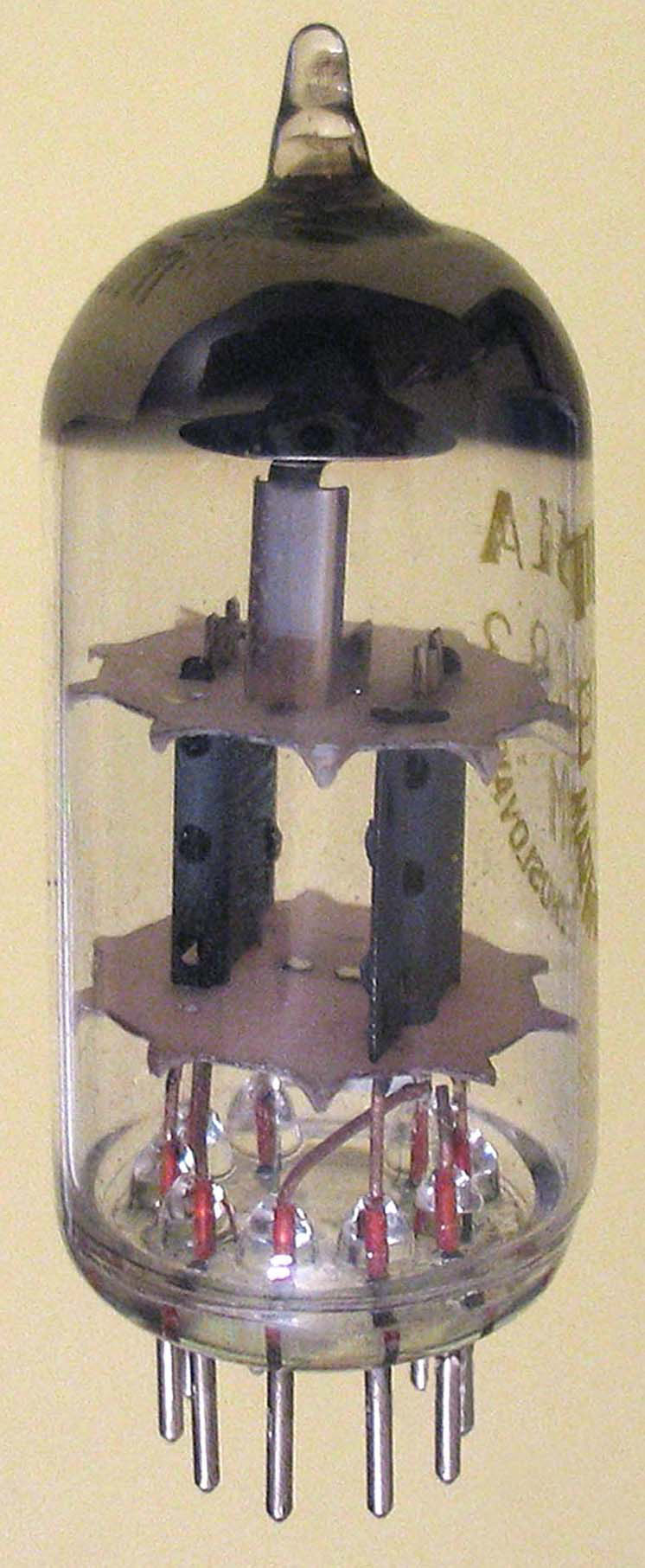 Fotografia 1 pokazuje popularną podwójną triodę ECC83. Z zewnątrz nie sposób tu zobaczyć struktury wewnętrznej pojedynczej triody, ale w sumie jej budowa jest praktycznie taka, jak pierwszych triod, gdzie wyraźnie było widać poszczególne detale.