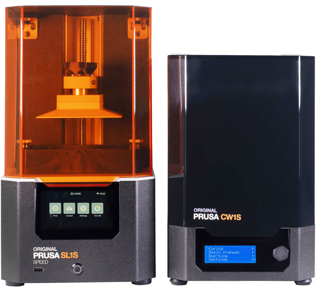 SLA (Stereolitografia) – obiekt budowany jest warstwa po warstwie z płynnej żywicy, która jest utwardzana miejscowo za pomocą światła UV. Pozwala to na uzyskanie bardzo szczegółowych i dokładnych wydruków o wysokiej jakości (gładkości) powierzchni. Niestety, ponieważ praktycznie wszystkie żywice fotoutwardzalne są wysoce szkodliwe, a w dodatku po wydruku modele należy wypłukać w alkoholu izopropylowym i ostatecznie utwardzić w świetle UV, to jej wykorzystanie w warunkach domowych jest problematyczne. Praktycznie rzecz biorąc, do pracy niezbędne jest przynajmniej osobne pomieszczenie z dobrą wentylacją oraz jednorazowe rękawiczki nitrylowe, a przydałaby się także maska filtrująca. Notabene pierwsza drukarka 3D na świecie pracowała właśnie w tej technologii. Na fotografii 2 przedstawiona jest drukarka żywiczna Prusa SL1S wraz urządzeniem do płukania i naświetlania Prusa CW1S.