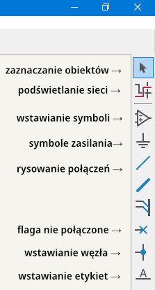 Prawy pasek narzędzi edytora schematów zawiera znacznie więcej narzędzi. Na rysunku 3 opisałem te, z których będziemy korzystali.