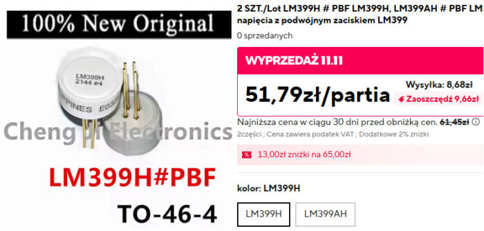 LM399 można kupić stosunkowo tanio jak na parametry, po około kilkadziesiąt złotych za sztukę. Przykład z linku: https://s.click.aliexpress.com/e/_c3Yo3cjf na rysunku 1 (cena za dwie sztuki). Inny link: https://s.click.aliexpress.com/e/_c3IKCOOd.